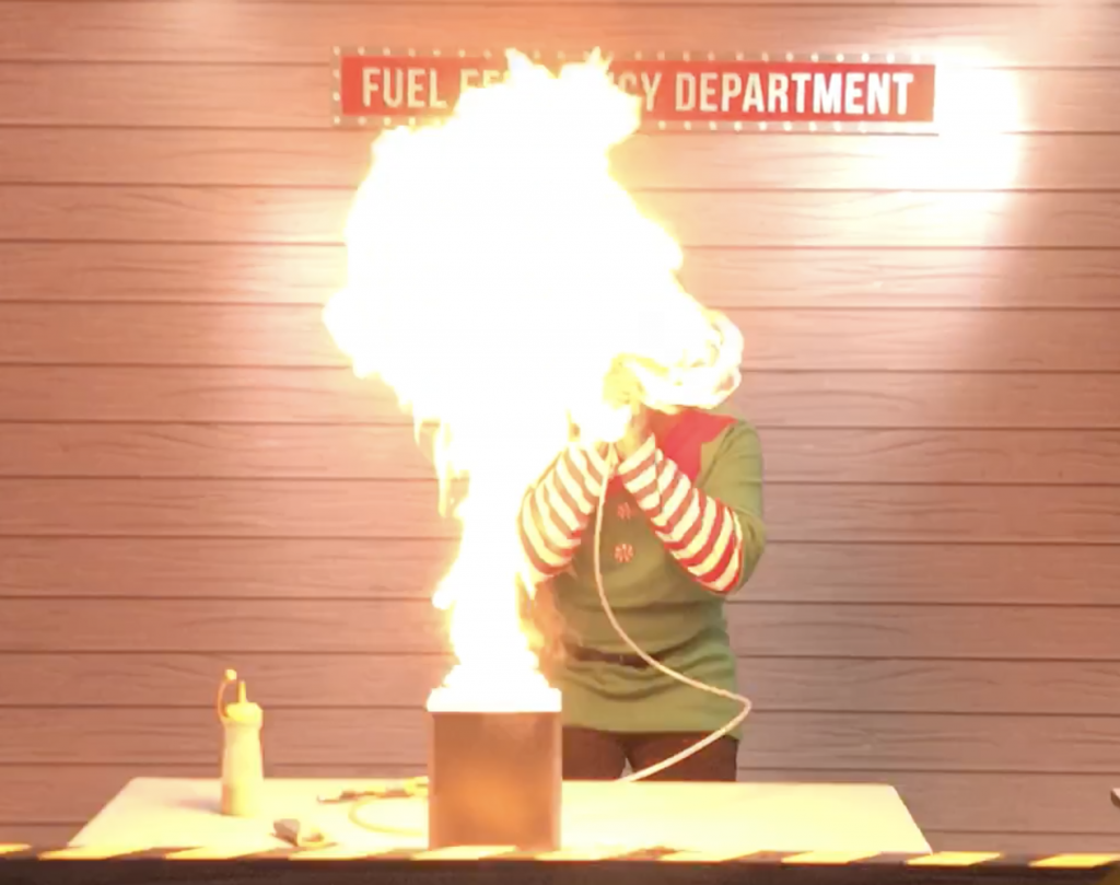 The number of asterisks show the loudness of the explosion. The heat experiments in the "Fuel Efficiency Department" are: