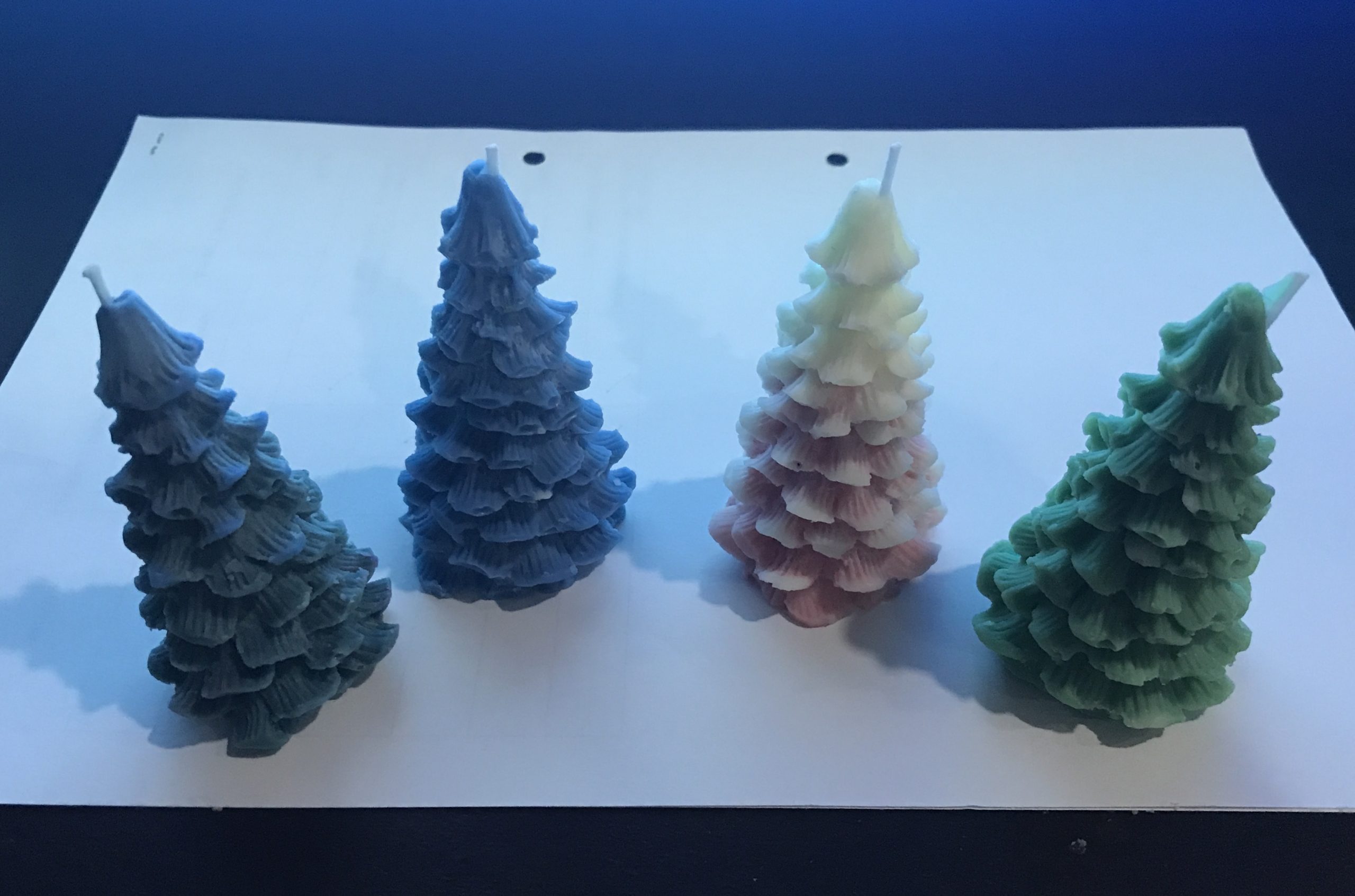 Do take care not to add too much colouring or the tree may not freeze evenly and hence, break easily. On hindsight, I should have used mainly non-coloured wax with a little green colouring for the base of the candle (to pour in last) to get a snow-covered Christmas tree.
