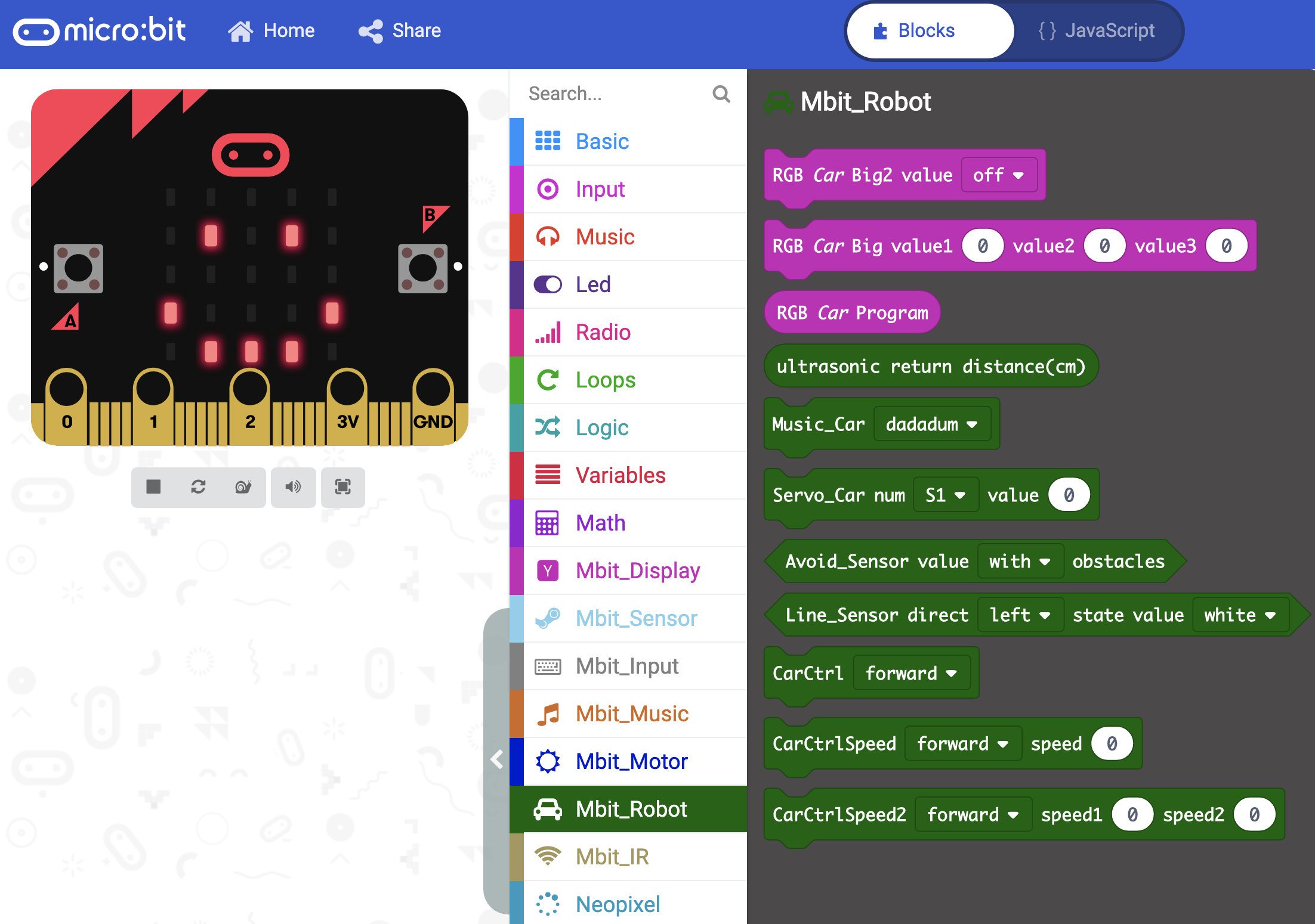 After programming the robot, download the hex file into the Microbit and the robot is good to go.
