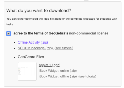 Method 1 is to embed the GeoGebra app in an iframe in SLS using the "Embed Website" method. This is my favourite method as any updates or improvements that I made later to the GeoGebra app is "live" and automatically seen by students when they next log in. It also reduces the AWS load on SLS, thus saving SLS some money. (Same thing for videos, embed as Youtube inside of uploading into SLS if you can help it).