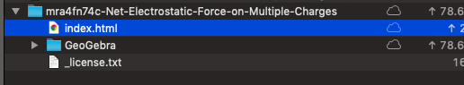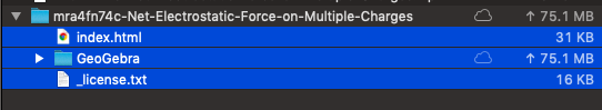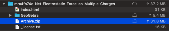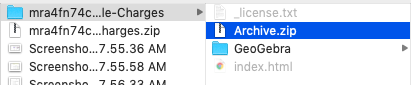 Do not zip the main folder. Select only the index.html and the folder with the title GeoGebra. The index.html file must be in the root directory of the new zip folder.